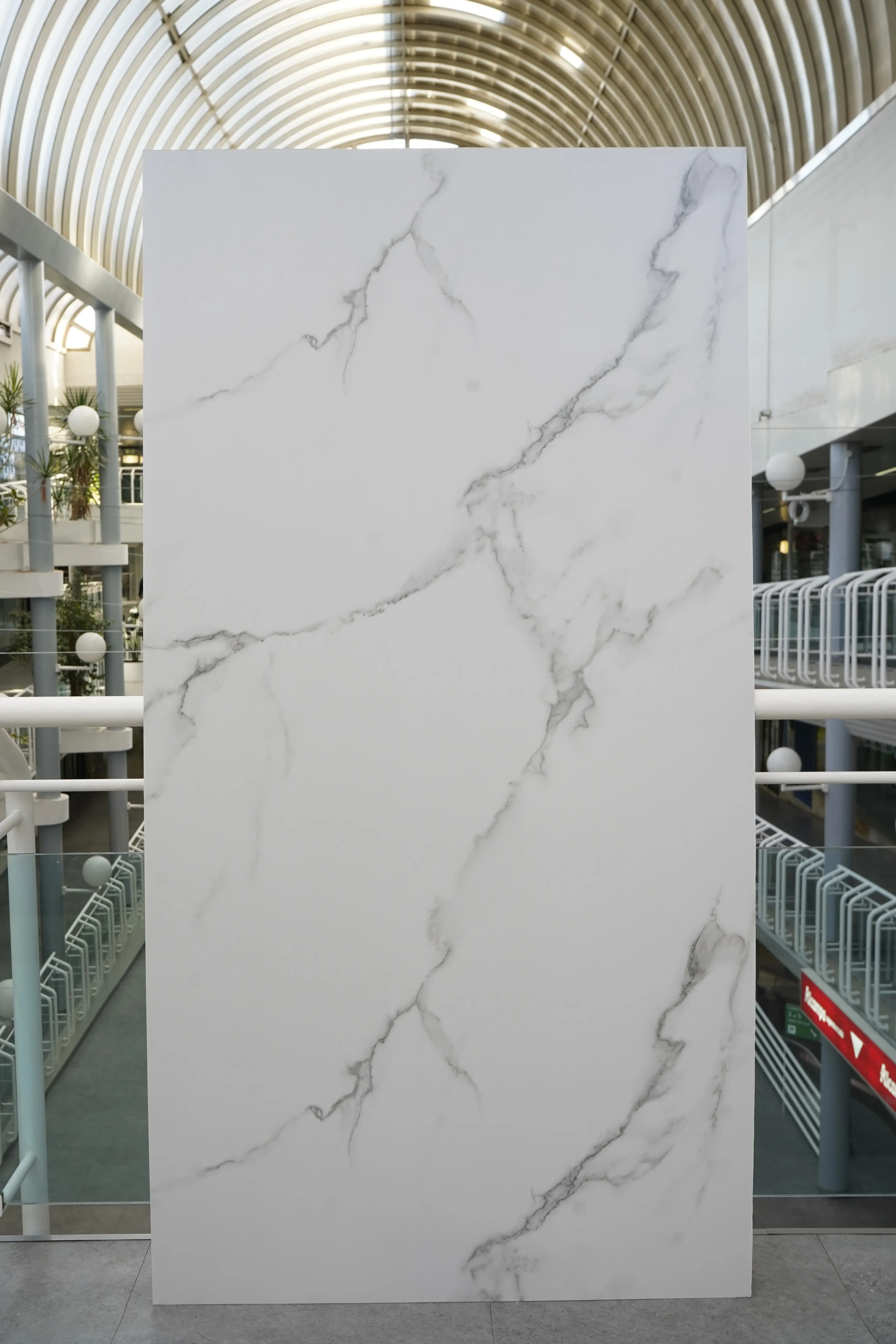 Placa de PVC con efecto mármol Calacatta Clásico en acabado mate. Elegancia atemporal con textura suave al tacto y sin reflejos.