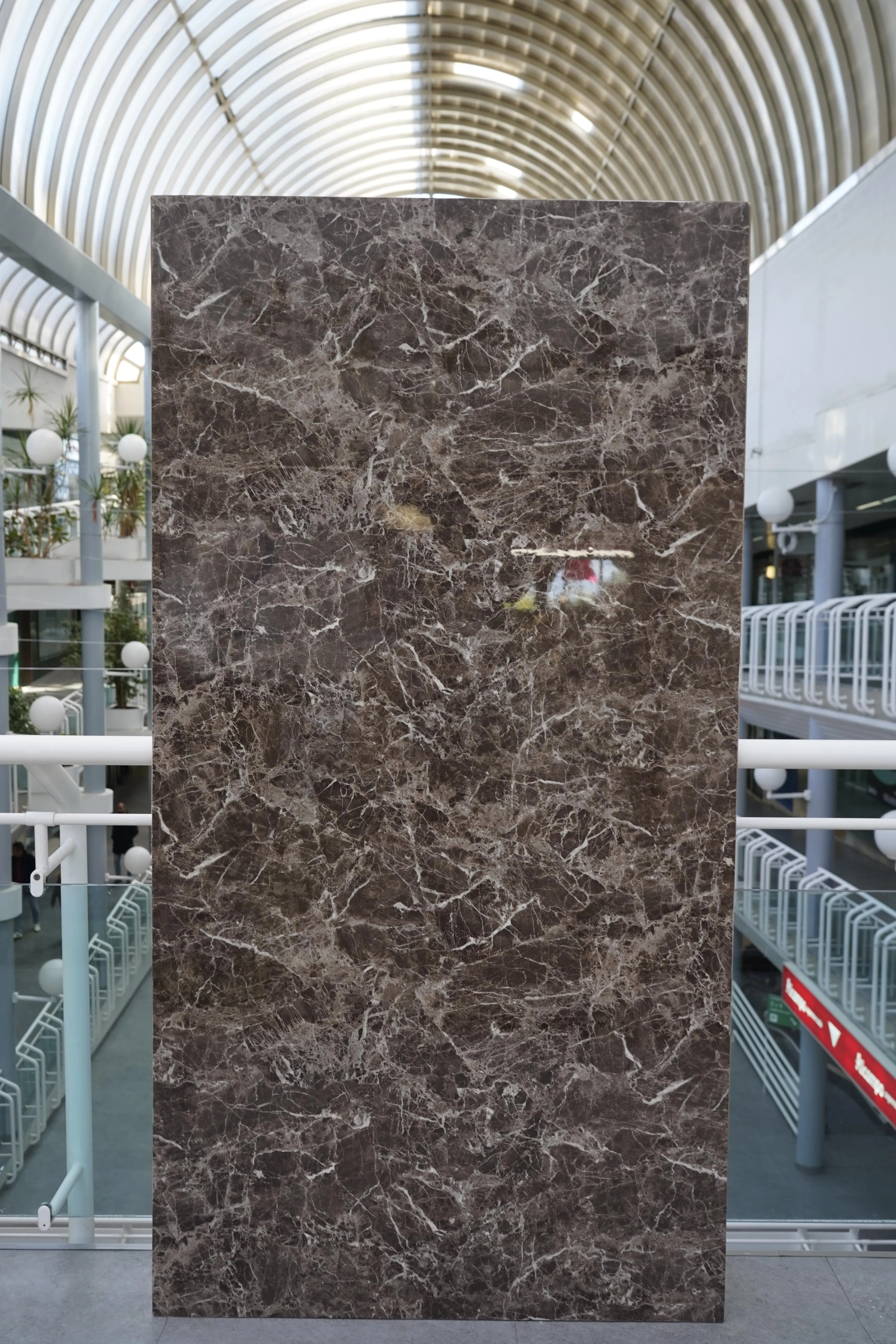 Placa de PVC con efecto mármol Dark Emperador. Tonos marrones oscuros con veteado intenso para ambientes distinguidos y sofisticados.
